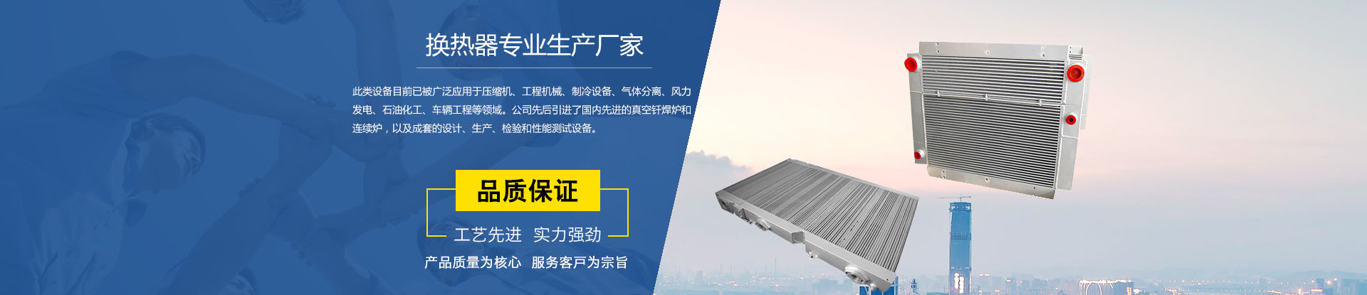 散熱器廣泛應(yīng)用于多個行業(yè),例如壓縮機,真空泵,工程機械,化工,火車,汽車及其他工業(yè)應(yīng)用領(lǐng)域。質(zhì)量是萬盛持續(xù)發(fā)展的生命,信譽是萬盛永恒追求的目標(biāo)。